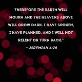 Therefore the earth will mourn and the heavens above will grow dark. I have spoken, I have planned, and I will not relent or turn back."