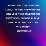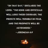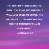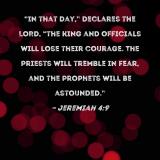 "In that day," declares the LORD, "the king and officials will lose their courage. The priests will tremble in fear, and the prophets will be astounded."