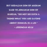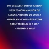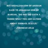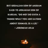 But Gedaliah son of Ahikam said to Johanan son of Kareah, "Do not do such a thing! What you are saying about Ishmael is a lie."