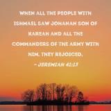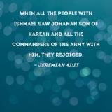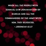 When all the people with Ishmael saw Johanan son of Kareah and all the commanders of the army with him, they rejoiced,