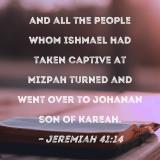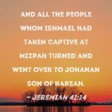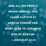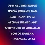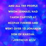 and all the people whom Ishmael had taken captive at Mizpah turned and went over to Johanan son of Kareah.