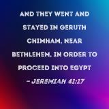 And they went and stayed in Geruth Chimham, near Bethlehem, in order to proceed into Egypt