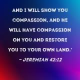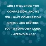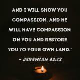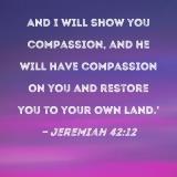 And I will show you compassion, and he will have compassion on you and restore you to your own land.'