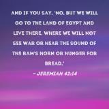 and if you say, 'No, but we will go to the land of Egypt and live there, where we will not see war or hear the sound of the ram's horn or hunger for bread,'