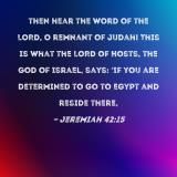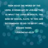 then hear the word of the LORD, O remnant of Judah! This is what the LORD of Hosts, the God of Israel, says: 'If you are determined to go to Egypt and reside there,