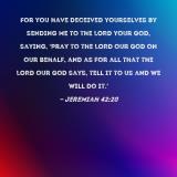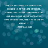 For you have deceived yourselves by sending me to the LORD your God, saying, 'Pray to the LORD our God on our behalf, and as for all that the LORD our God says, tell it to us and we will do it.'