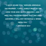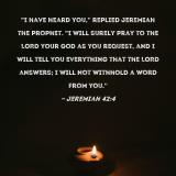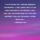 "I have heard you," replied Jeremiah the prophet. "I will surely pray to the LORD your God as you request, and I will tell you everything that the LORD answers; I will not withhold a word from you."