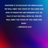 Whether it is pleasant or unpleasant, we will obey the voice of the LORD our God to whom we are sending you, so that it may go well with us, for we will obey the voice of the LORD our God!"