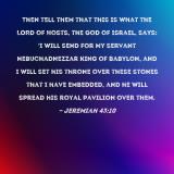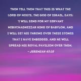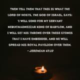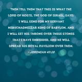 Pictures and Artwork Then tell them that this is what the LORD of Hosts, the God of Israel, says: 'I will send for My servant Nebuchadnezzar king of Babylon, and I will set his throne over these stones that I have embedded, and he will spread his royal pavilion over them. |