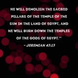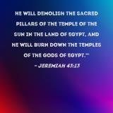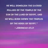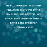 He will demolish the sacred pillars of the temple of the sun in the land of Egypt, and he will burn down the temples of the gods of Egypt.'"