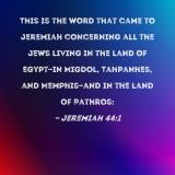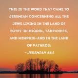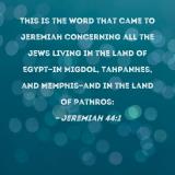 This is the word that came to Jeremiah concerning all the Jews living in the land of Egypt--in Migdol, Tahpanhes, and Memphis--and in the land of Pathros: