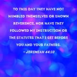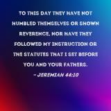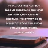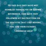 To this day they have not humbled themselves or shown reverence, nor have they followed My instruction or the statutes that I set before you and your fathers.