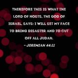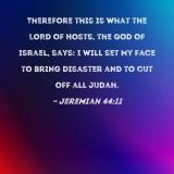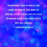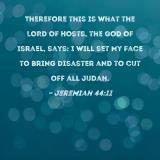 Therefore this is what the LORD of Hosts, the God of Israel, says: I will set My face to bring disaster and to cut off all Judah.