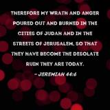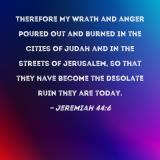 Therefore My wrath and anger poured out and burned in the cities of Judah and in the streets of Jerusalem, so that they have become the desolate ruin they are today.