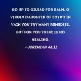 Go up to Gilead for balm, O Virgin Daughter of Egypt! In vain you try many remedies, but for you there is no healing.