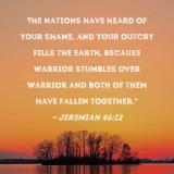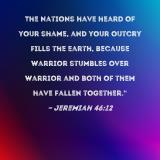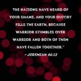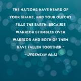 The nations have heard of your shame, and your outcry fills the earth, because warrior stumbles over warrior and both of them have fallen together."