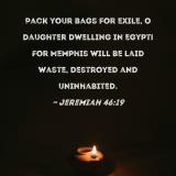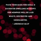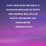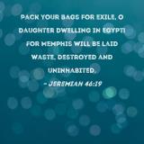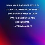 Pack your bags for exile, O daughter dwelling in Egypt! For Memphis will be laid waste, destroyed and uninhabited.