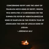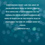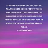 concerning Egypt and the army of Pharaoh Neco king of Egypt, which was defeated at Carchemish on the Euphrates River by Nebuchadnezzar king of Babylon in the fourth year of Jehoiakim the son of Josiah king of Judah: