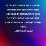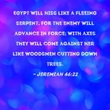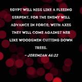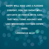Egypt will hiss like a fleeing serpent, for the enemy will advance in force; with axes they will come against her like woodsmen cutting down trees.