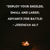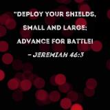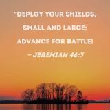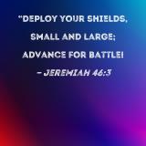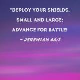 "Deploy your shields, small and large; advance for battle!