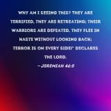 Why am I seeing this? They are terrified, they are retreating; their warriors are defeated, they flee in haste without looking back; terror is on every side!" declares the LORD.