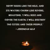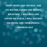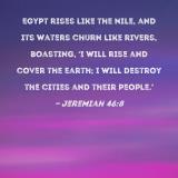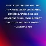 Egypt rises like the Nile, and its waters churn like rivers, boasting, 'I will rise and cover the earth; I will destroy the cities and their people.'