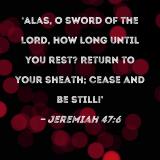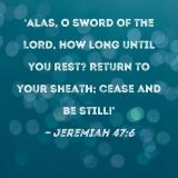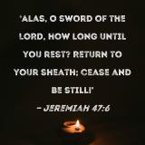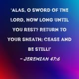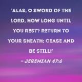 Alas, O sword of the LORD, how long until you rest? Return to your sheath; cease and be still!'