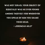 Was not Israel your object of ridicule? Was he ever found among thieves? For whenever you speak of him you shake your head.