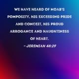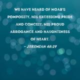 We have heard of Moab's pomposity, his exceeding pride and conceit, his proud arrogance and haughtiness of heart.