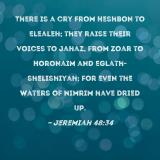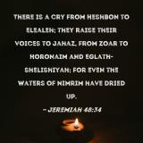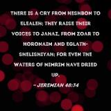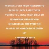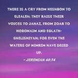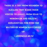 There is a cry from Heshbon to Elealeh; they raise their voices to Jahaz, from Zoar to Horonaim and Eglath-shelishiyah; for even the waters of Nimrim have dried up.
