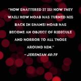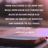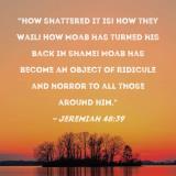 "How shattered it is! How they wail! How Moab has turned his back in shame! Moab has become an object of ridicule and horror to all those around him."