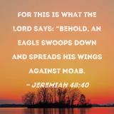 For this is what the LORD says: "Behold, an eagle swoops down and spreads his wings against Moab.