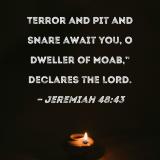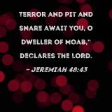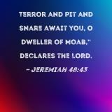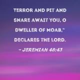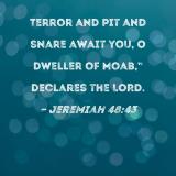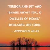 Terror and pit and snare await you, O dweller of Moab," declares the LORD.