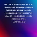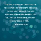 For this is what the LORD says: "If those who do not deserve to drink the cup must drink it, can you possibly remain unpunished? You will not go unpunished, for you must drink it too.