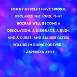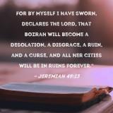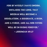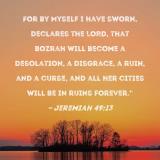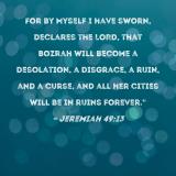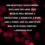 For by Myself I have sworn, declares the LORD, that Bozrah will become a desolation, a disgrace, a ruin, and a curse, and all her cities will be in ruins forever."