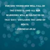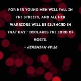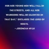 For her young men will fall in the streets, and all her warriors will be silenced in that day," declares the LORD of Hosts.