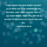 I will bring the four winds against Elam from the four corners of the heavens, and I will scatter them to all these winds. There will not be a nation to which Elam's exiles will not go.