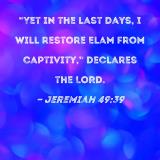 "Yet in the last days, I will restore Elam from captivity," declares the LORD.