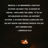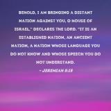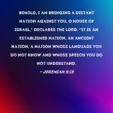 Behold, I am bringing a distant nation against you, O house of Israel," declares the LORD. "It is an established nation, an ancient nation, a nation whose language you do not know and whose speech you do not understand.