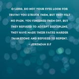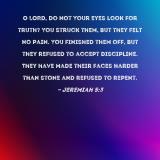 O LORD, do not Your eyes look for truth? You struck them, but they felt no pain. You finished them off, but they refused to accept discipline. They have made their faces harder than stone and refused to repent.