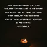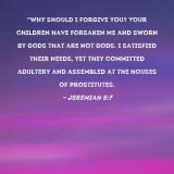 "Why should I forgive you? Your children have forsaken Me and sworn by gods that are not gods. I satisfied their needs, yet they committed adultery and assembled at the houses of prostitutes.