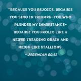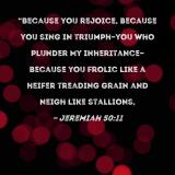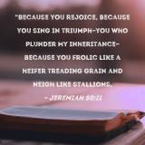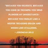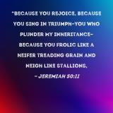 "Because you rejoice, because you sing in triumph--you who plunder My inheritance--because you frolic like a heifer treading grain and neigh like stallions,
