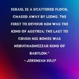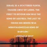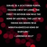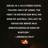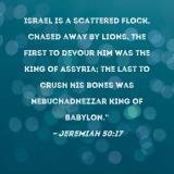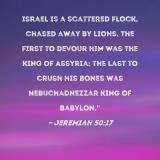 Israel is a scattered flock, chased away by lions. The first to devour him was the king of Assyria; the last to crush his bones was Nebuchadnezzar king of Babylon."