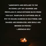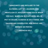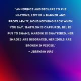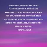 "Announce and declare to the nations; lift up a banner and proclaim it; hold nothing back when you say, 'Babylon is captured; Bel is put to shame; Marduk is shattered, her images are disgraced, her idols are broken in pieces.'