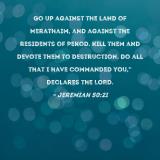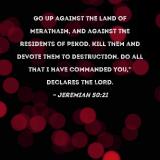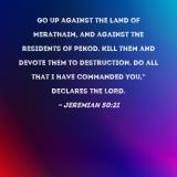 Go up against the land of Merathaim, and against the residents of Pekod. Kill them and devote them to destruction. Do all that I have commanded you," declares the LORD.