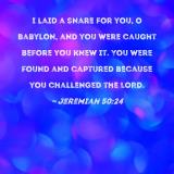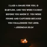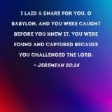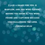 I laid a snare for you, O Babylon, and you were caught before you knew it. You were found and captured because you challenged the LORD.