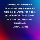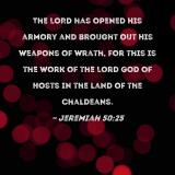 The LORD has opened His armory and brought out His weapons of wrath, for this is the work of the Lord GOD of Hosts in the land of the Chaldeans.