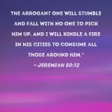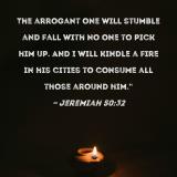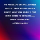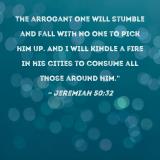 The arrogant one will stumble and fall with no one to pick him up. And I will kindle a fire in his cities to consume all those around him."