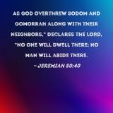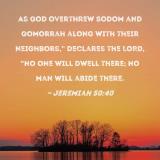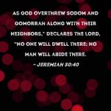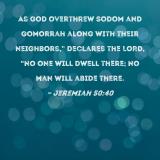 As God overthrew Sodom and Gomorrah along with their neighbors," declares the LORD, "no one will dwell there; no man will abide there.