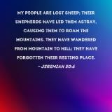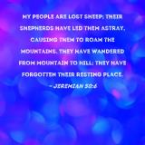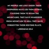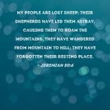 My people are lost sheep; their shepherds have led them astray, causing them to roam the mountains. They have wandered from mountain to hill; they have forgotten their resting place.